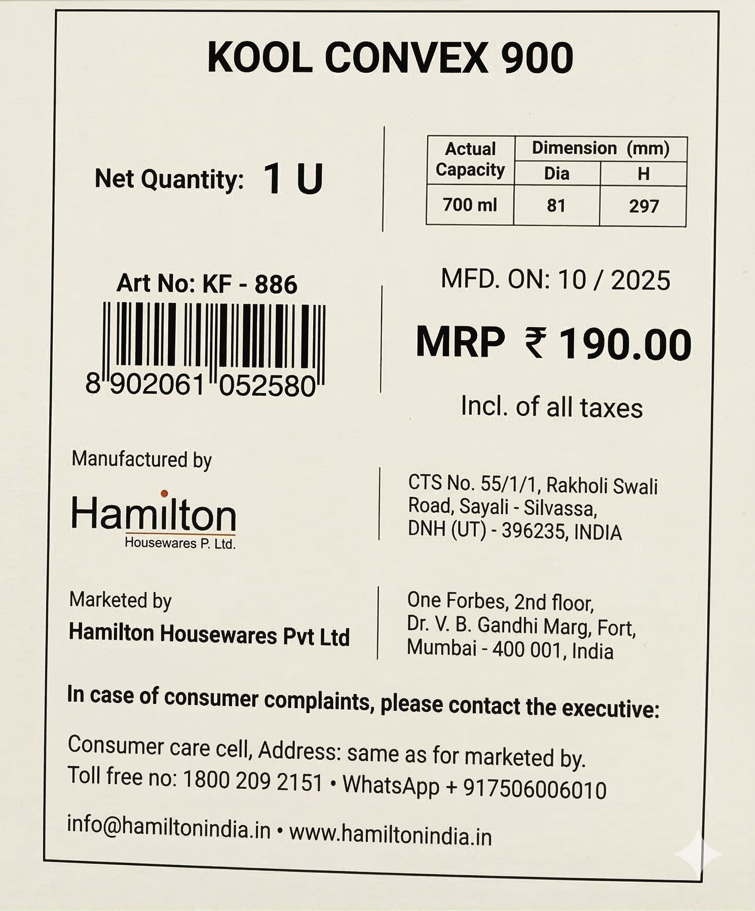 MILTON – KOOL CONVEX 900ml
