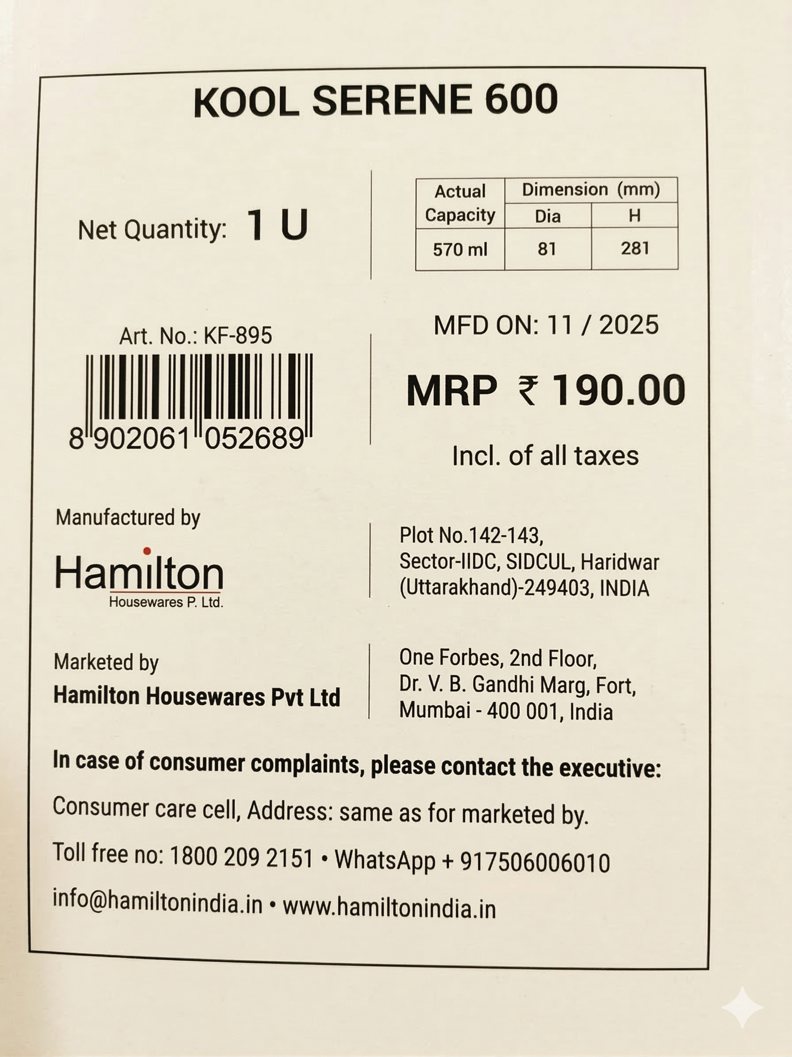 MILTON – KOOL SERENE 600ml
